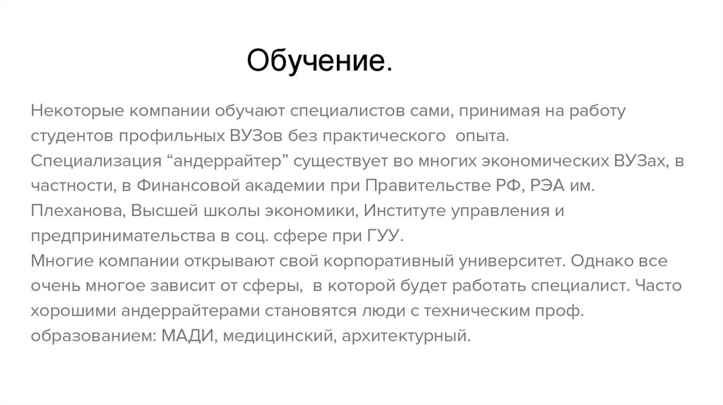 Специализация “андеррайтер” существует во многих экономических ВУЗах, в
