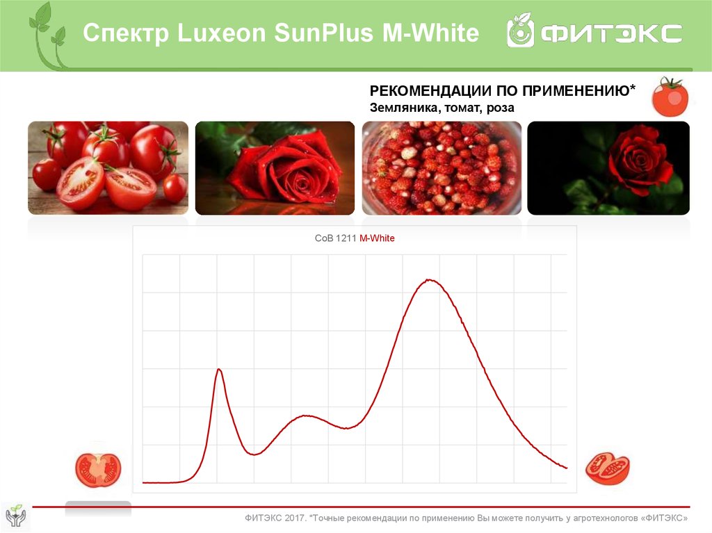 Спектр Luxeon SunPlus M-WhiteРЕКОМЕНДАЦИИ ПО ПРИМЕНЕНИЮ*