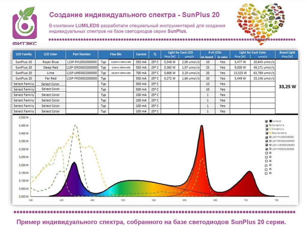 Создание индивидуального спектра - SunPlus 20В компании LUMILEDS разработали специальный инструментарий для создания