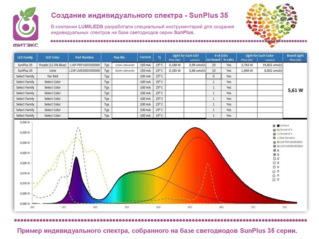 Создание индивидуального спектра - SunPlus 35В компании LUMILEDS разработали специальный инструментарий для создания
