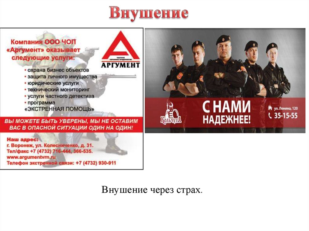 Внушение через страх и заражение эмоцией.25.
