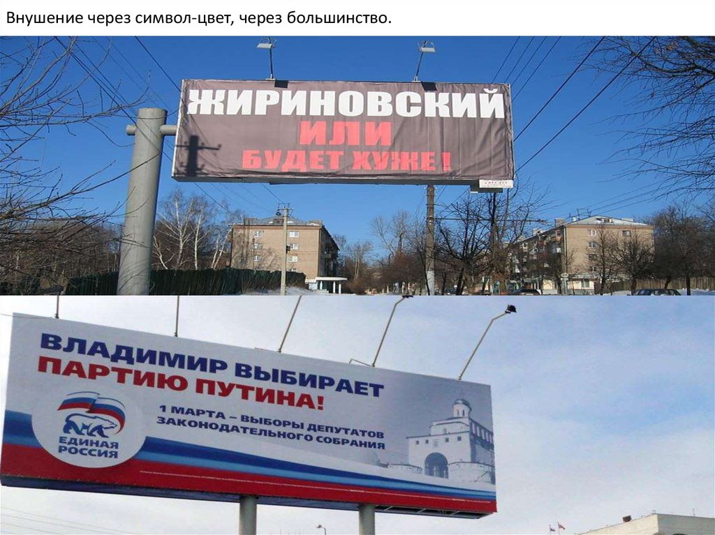 Внушение через символ-цвет, через большинство.15.