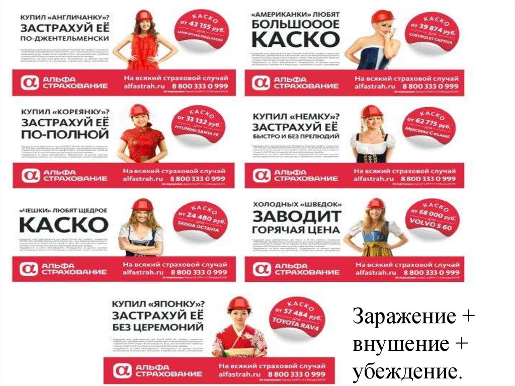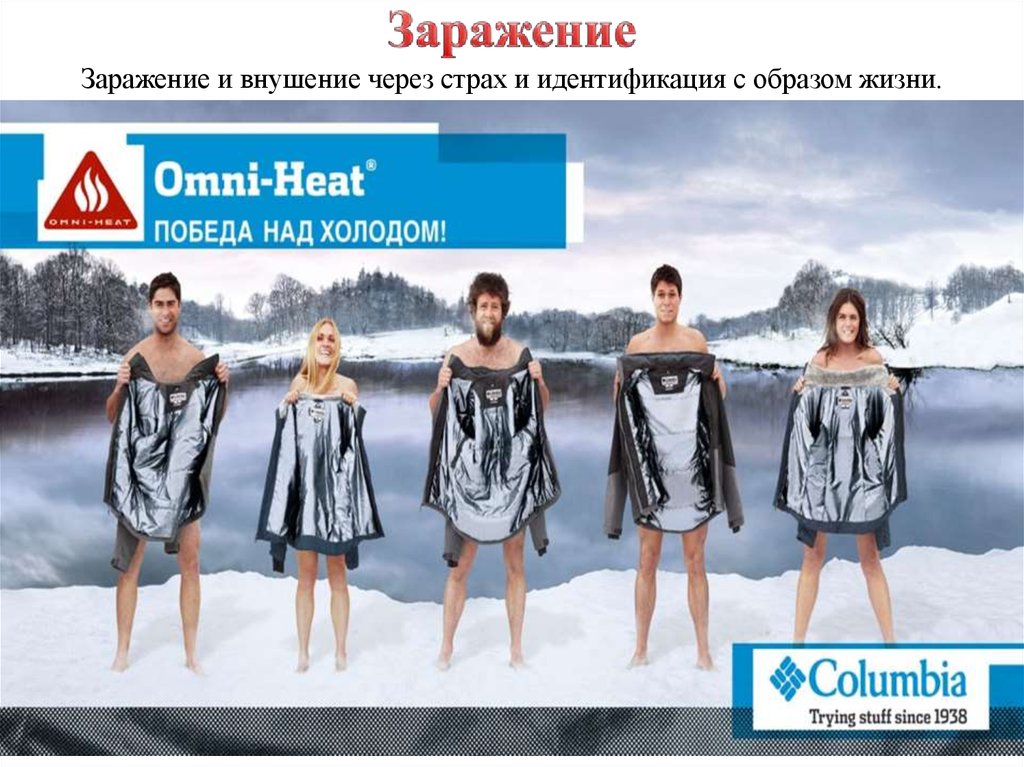 Заражение и внушение через страх и идентификация с образом жизни.21.