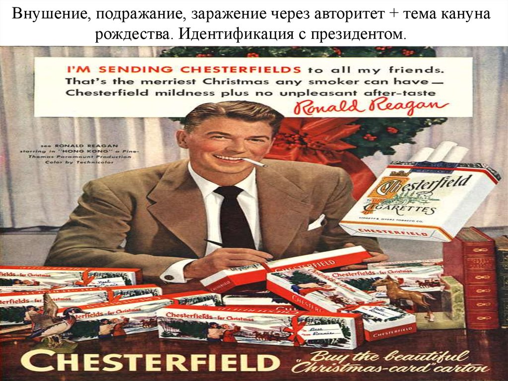 Внушение, подражание, заражение через авторитет + тема канунарождества. Идентификация с президентом.