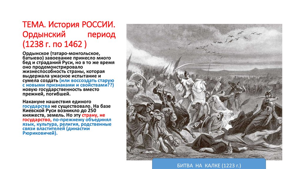 1. ТЕМА. История РОССИИ. Ордынский период (1238 г. по 1462 )