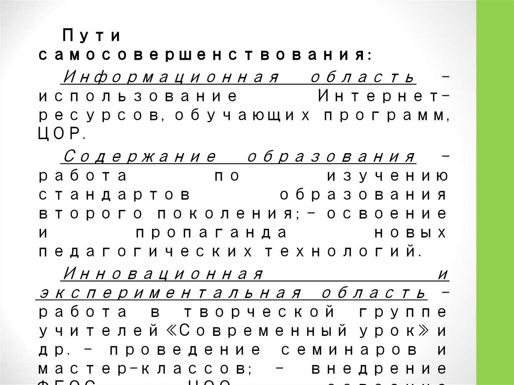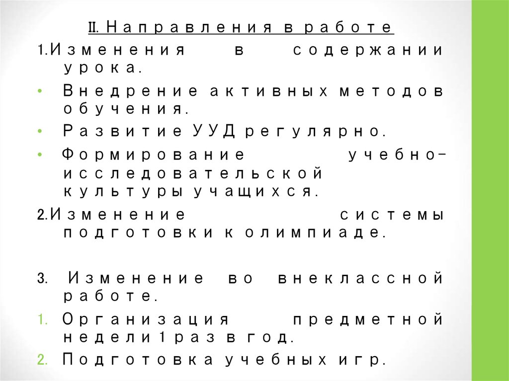 II. Направления в работе1.Изменения