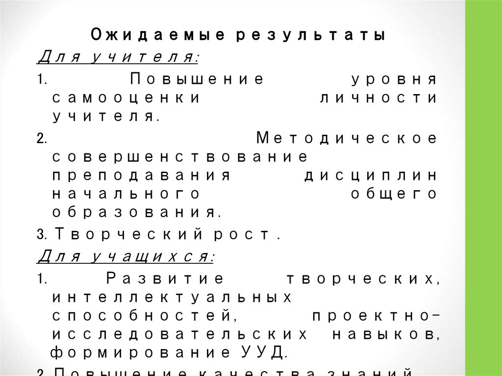 Ожидаемые результатыДля учителя: