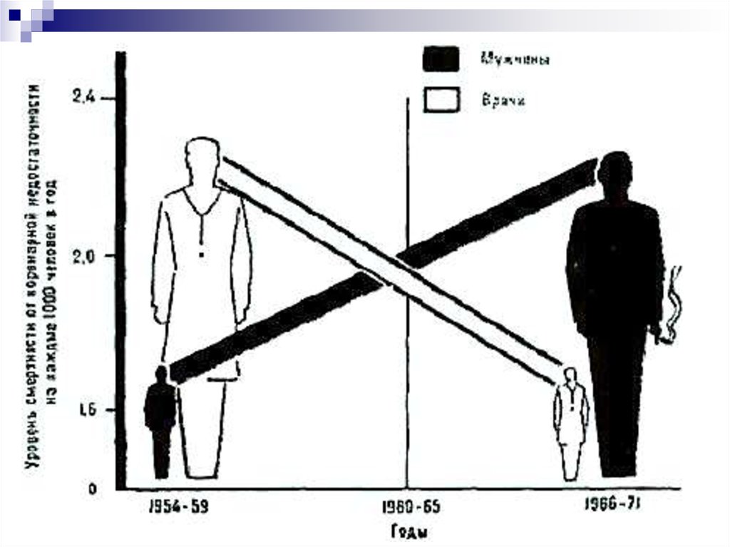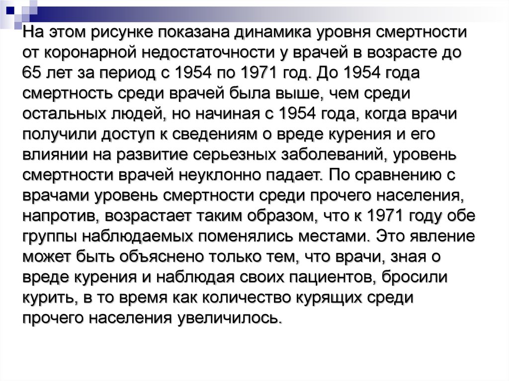 На этом рисунке показана динамика уровня смертностиот коронарной недостаточности у врачей в возрасте до