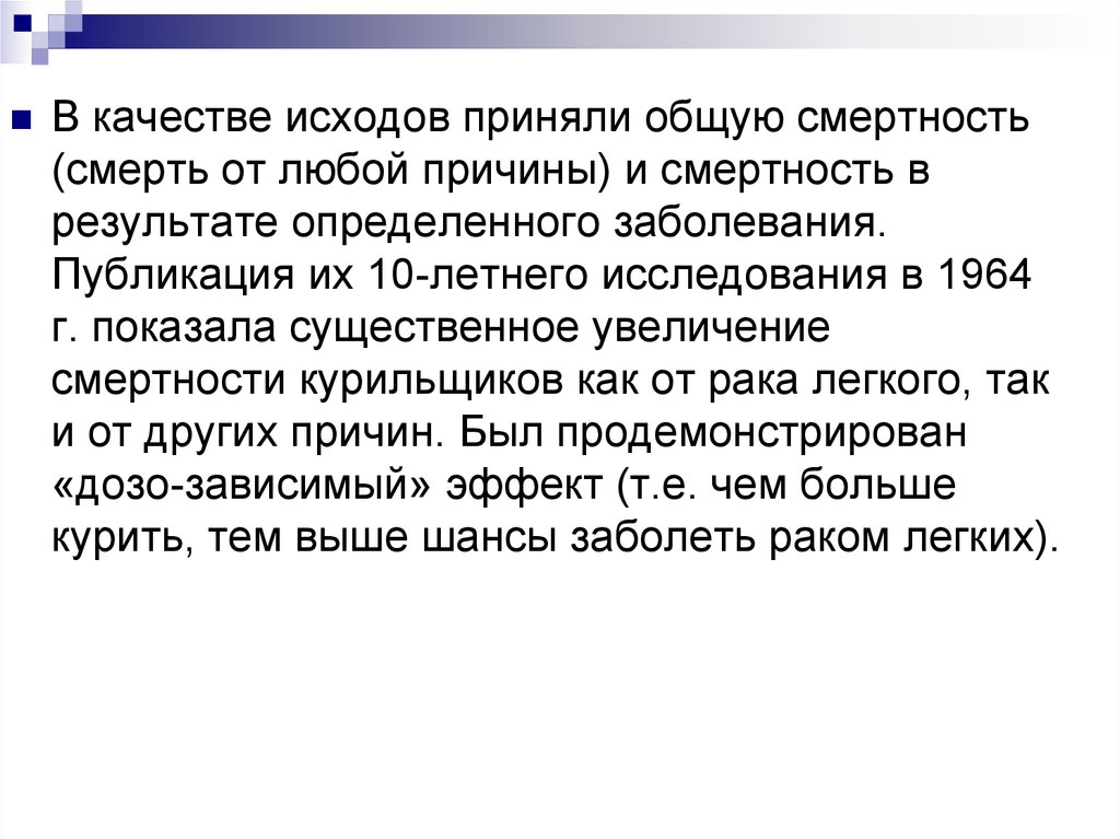 смертности курильщиков как от рака легкого, так