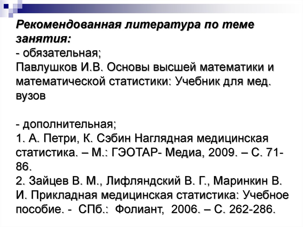 И. Прикладная медицинская статистика: Учебное