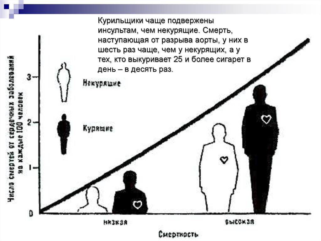 Курильщики чаще подверженыинсультам, чем некурящие. Смерть,
