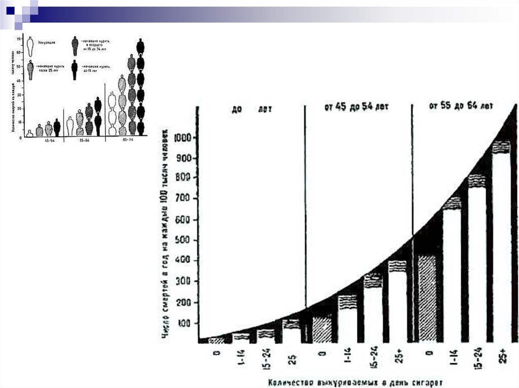 и курящие много).