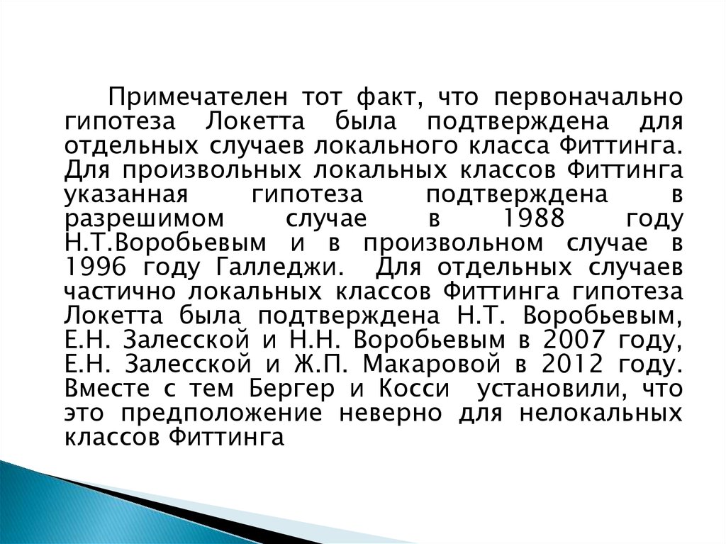 Примечателен тот факт, что первоначальногипотеза Локетта была подтверждена для
