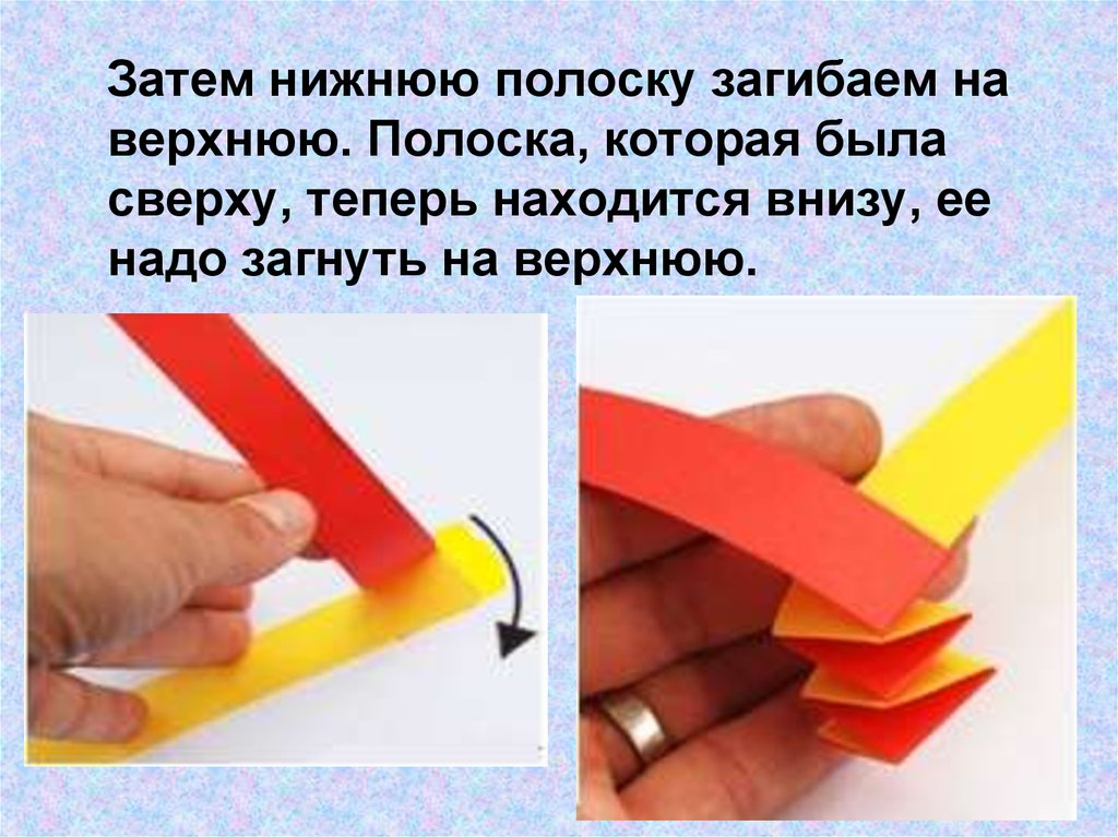 Затем нижнюю полоску загибаем наверхнюю. Полоска, которая была