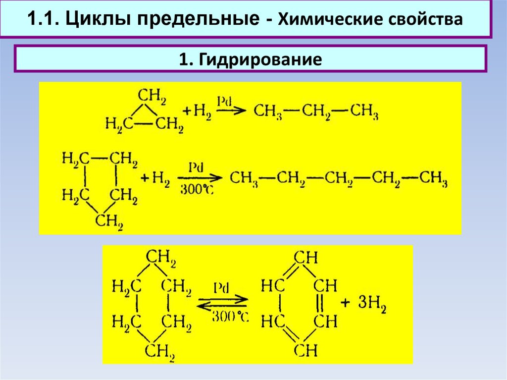 1.1. Циклы предельные - Химические свойства1. Гидрирование