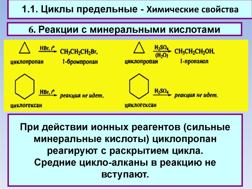 1.1. Циклы предельные - Химические свойства4. Циклопропановый цикл расщепляется