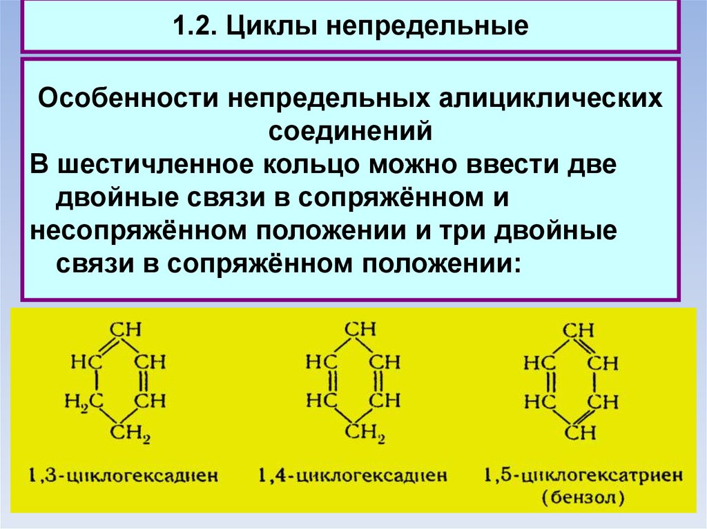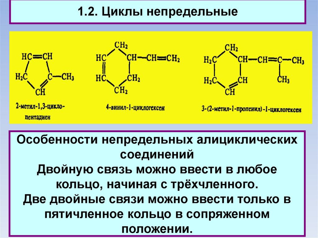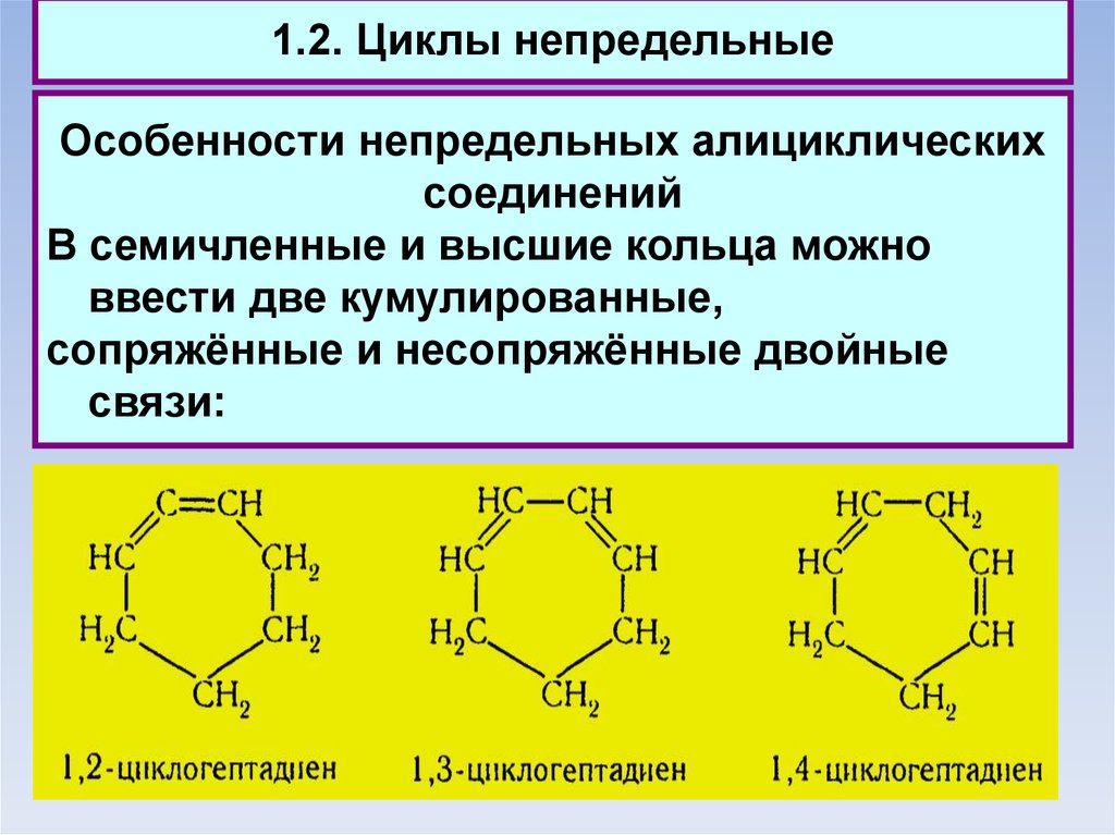 Существуют также цикло-олефины, циклодиолефины, цикло-ацетилены и т. д.
