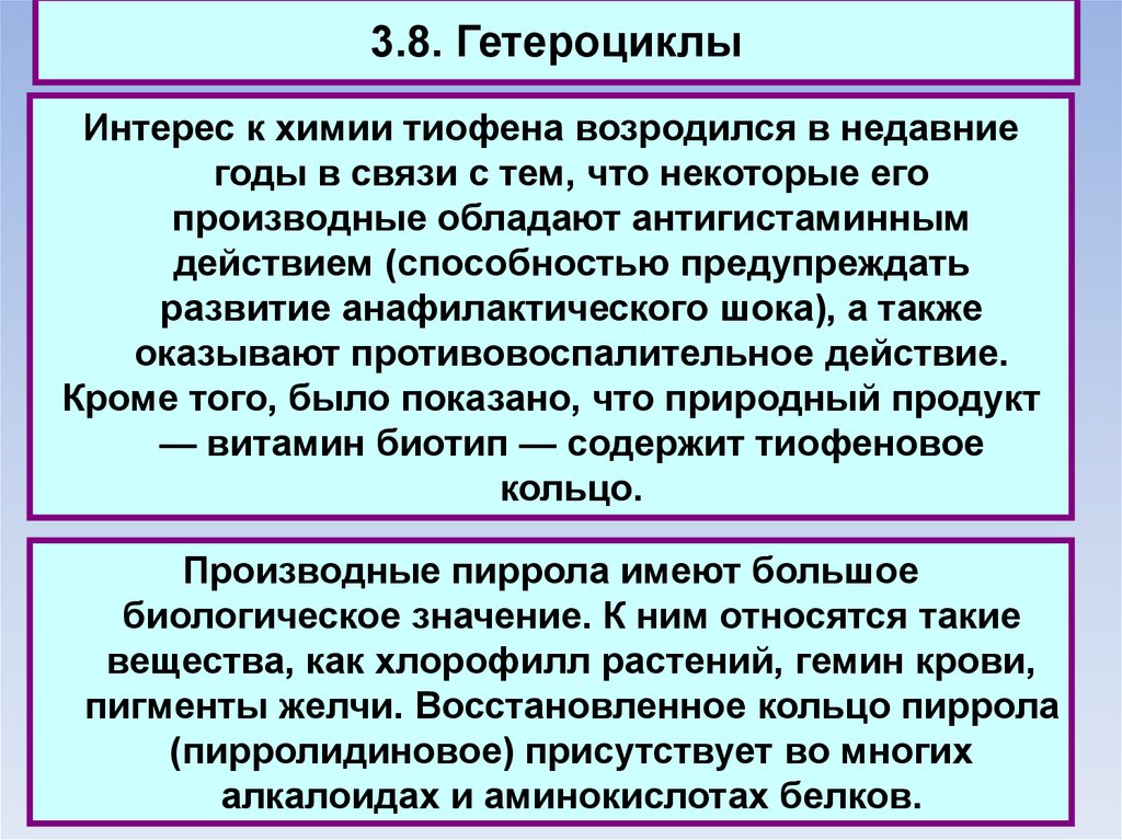3.8. ГетероциклыИнтерес к химии тиофена возродился в недавние