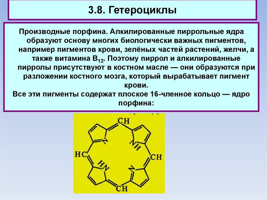 3.8. ГетероциклыХлорофилл является магниевым комплексом порфирина,