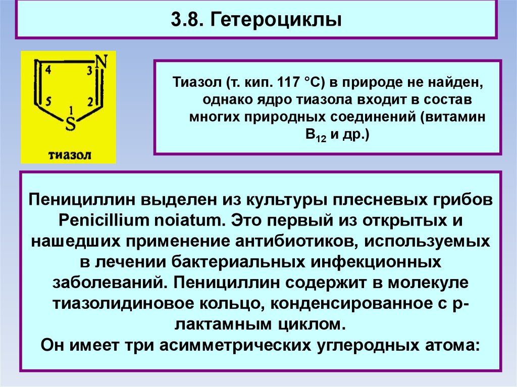 3.8. ГетероциклыТиазол (т. кип. 117 °C) в природе не найден,