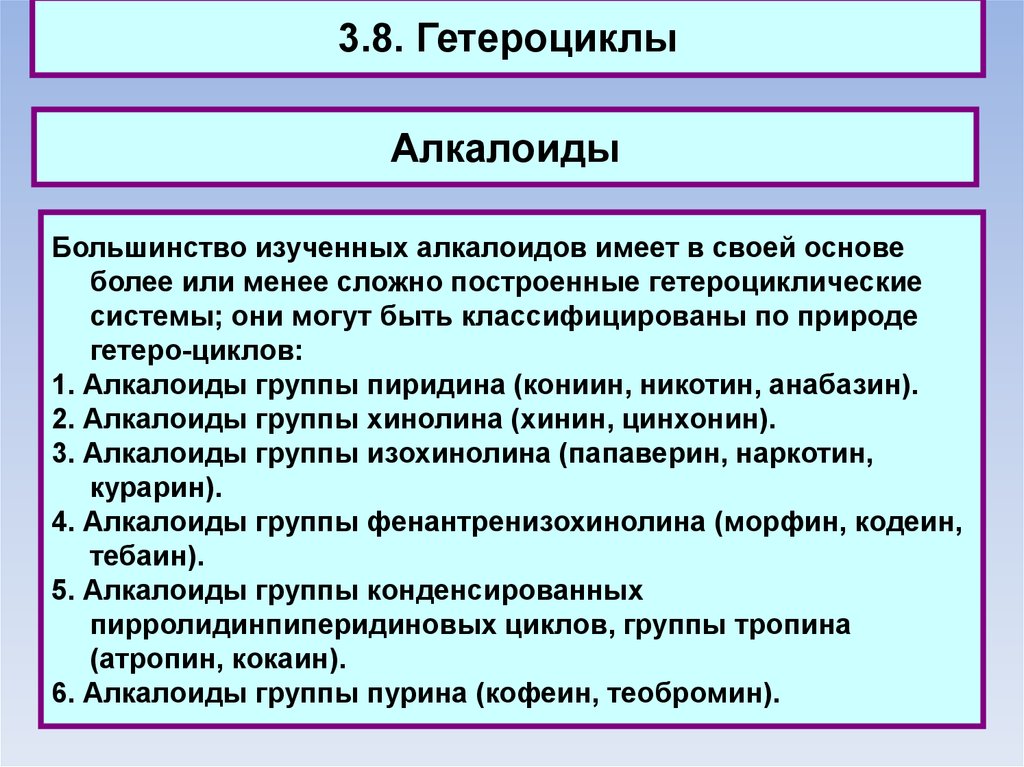 1. Алкалоиды группы пиридина (кониин, никотин, анабазин).