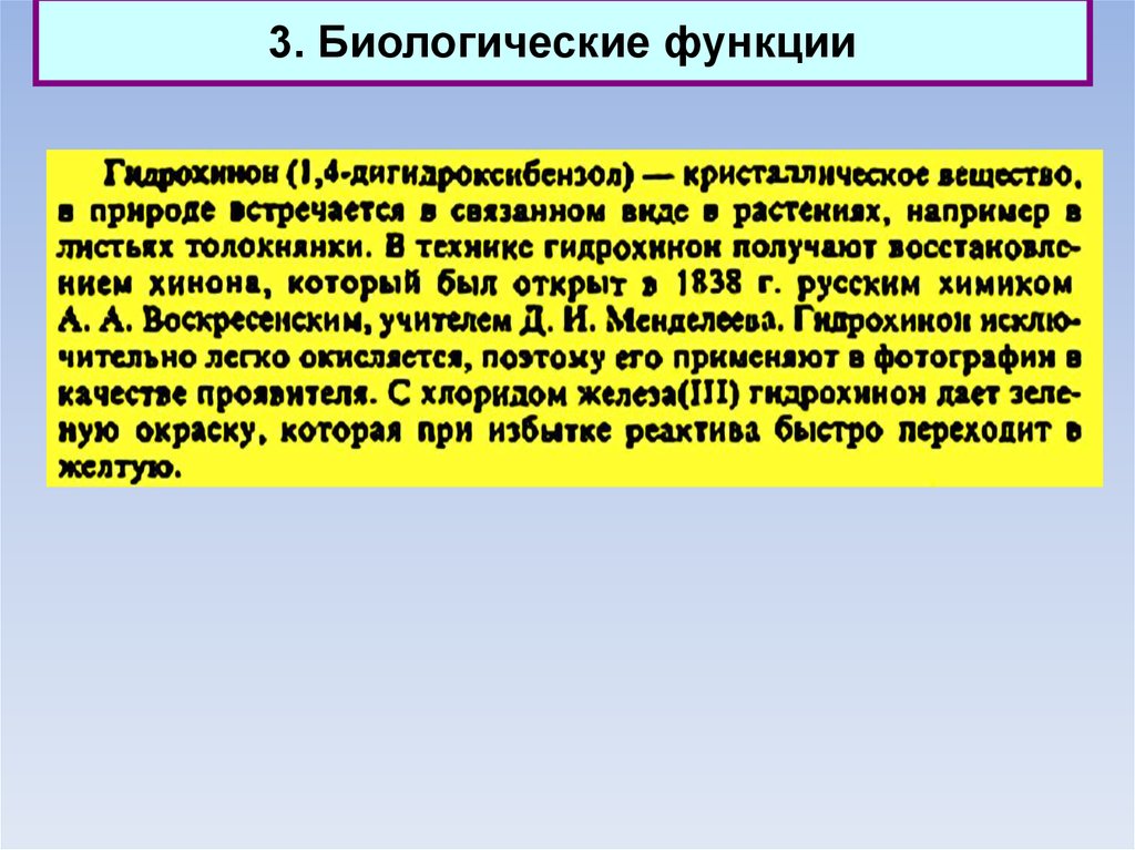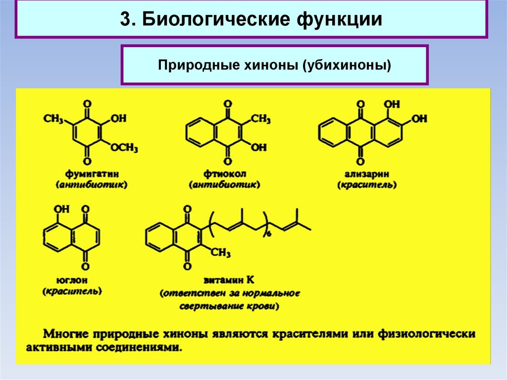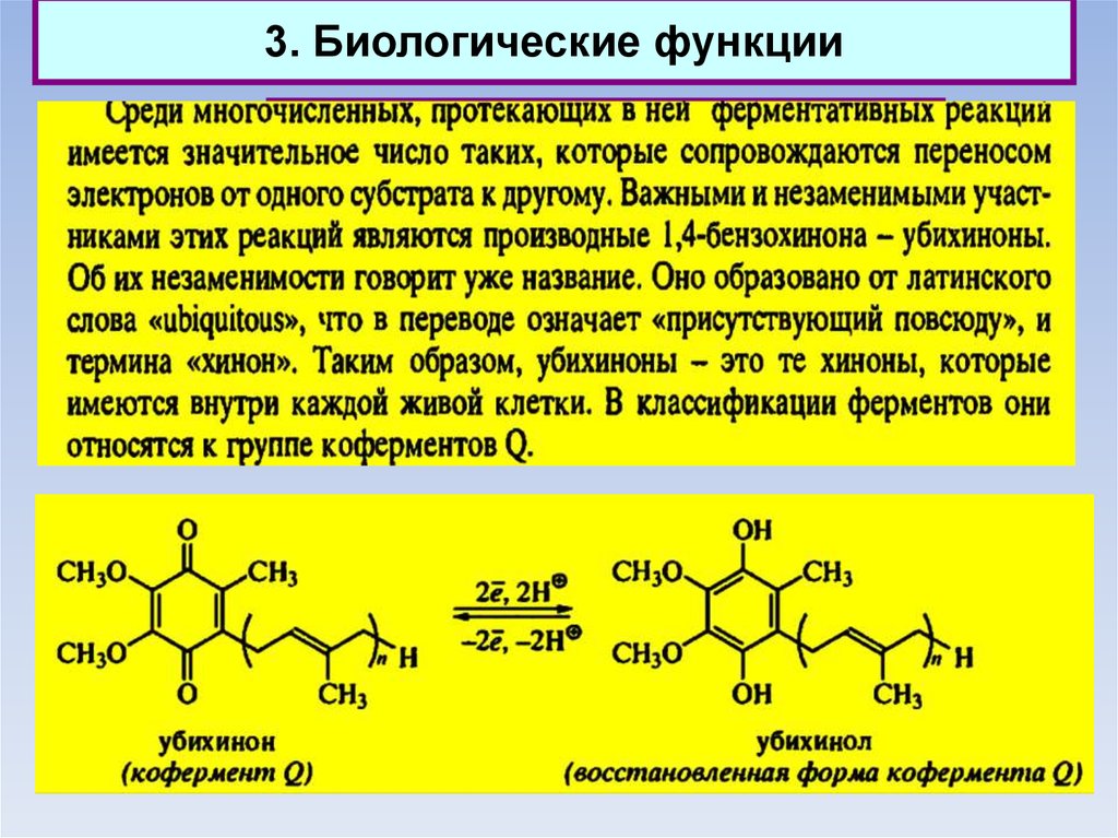 3. Биологические функцииПриродные хиноны (убихиноны)