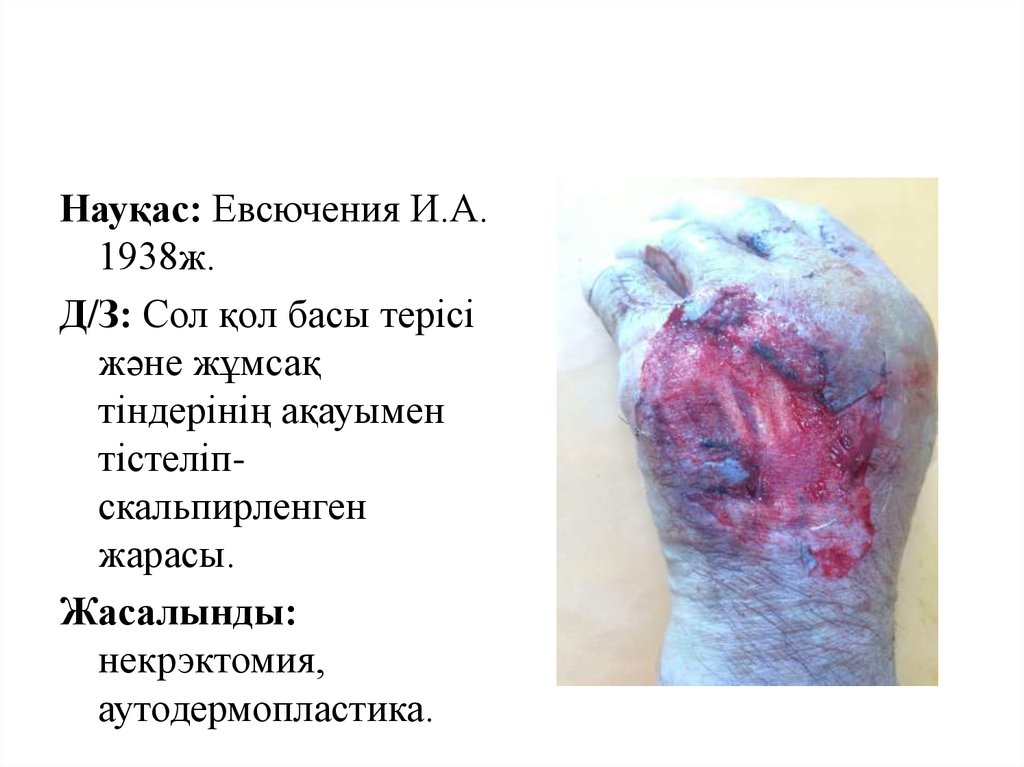 Науқас: . Сальников С.1978ж.Д/З: Сол жақ балтырдың терісі