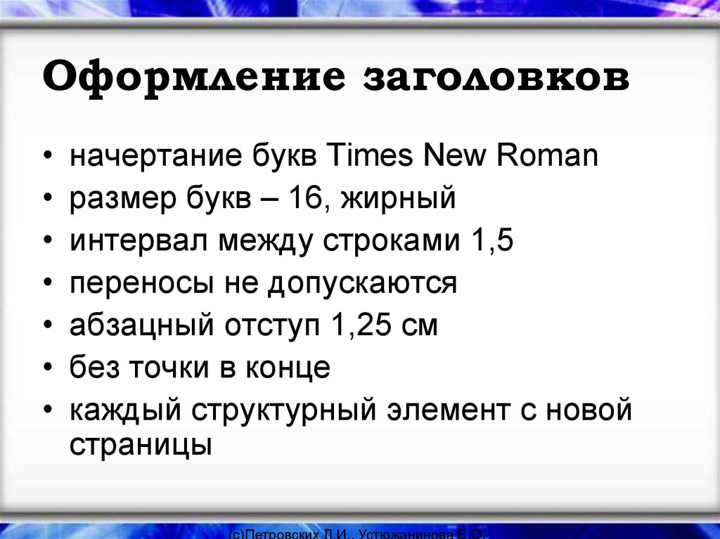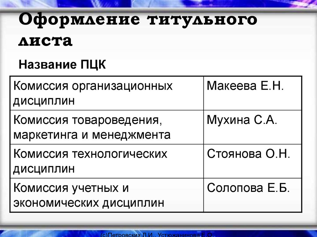 (с)Петровских Л.И., Устюжанинова Е.О.