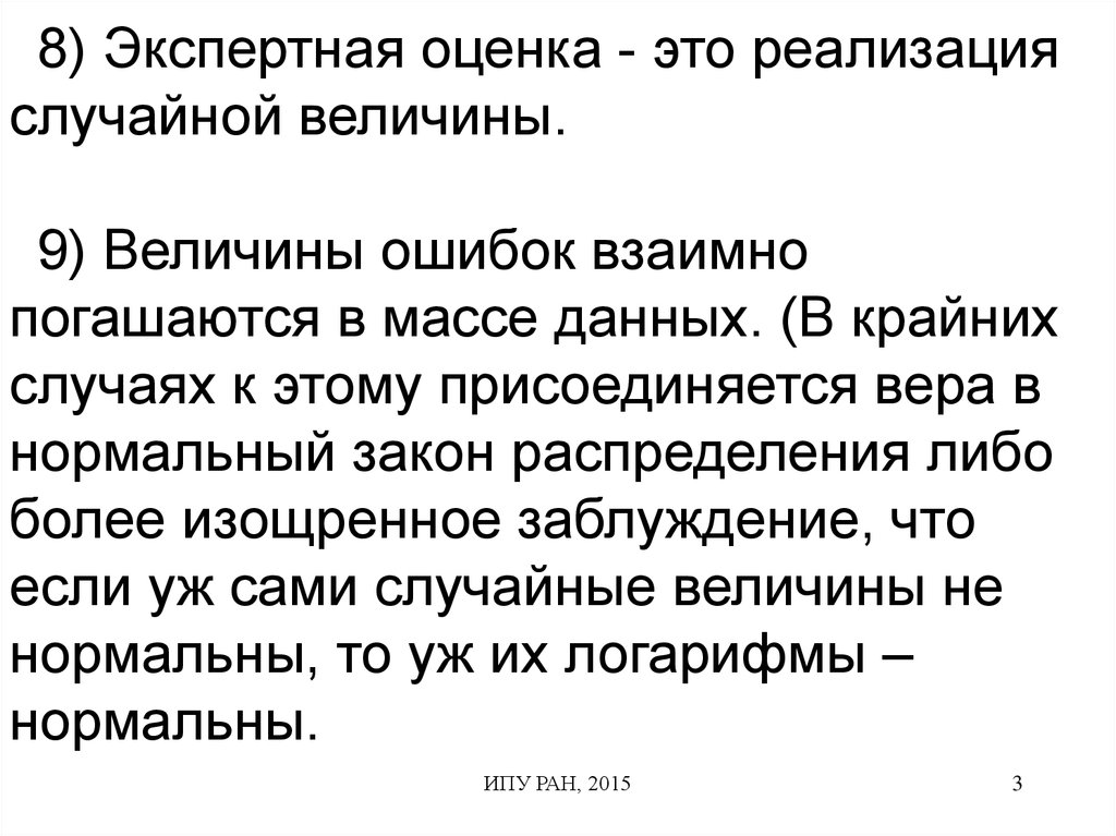 8) Экспертная оценка - это реализацияслучайной величины.