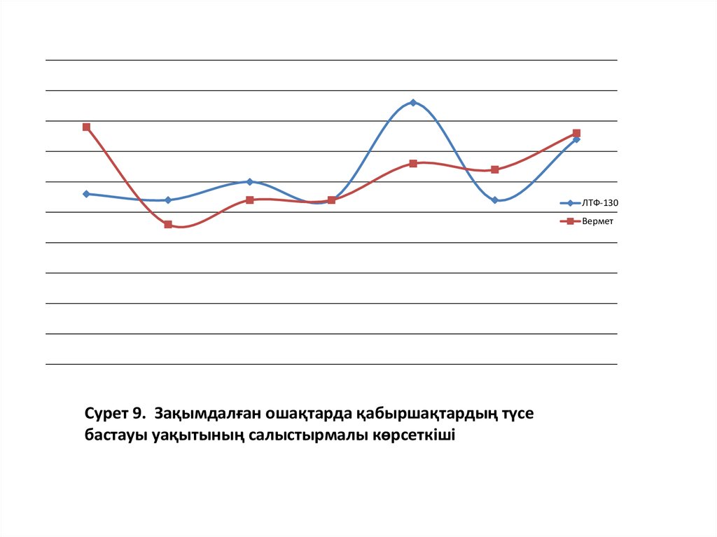 Сурет 8. Зақымдалған ошақтардың қабыршақталуы уақытының