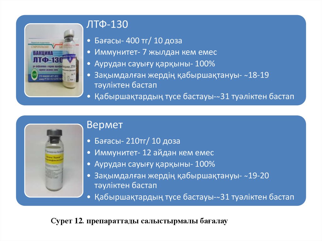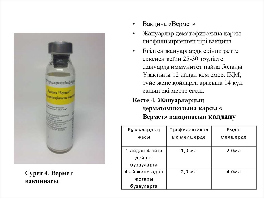 Вермет вакциналары қолданды. Бақылау топтарында вакциналардың емдік