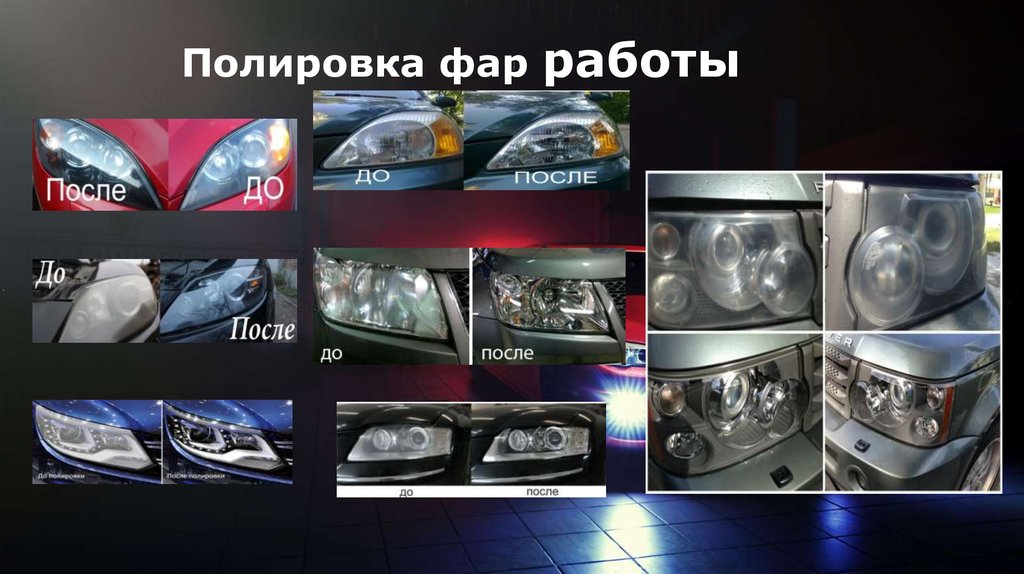 1. Ремонт сколов и трещин Остановка трещин Полировка фар Возможен выезд