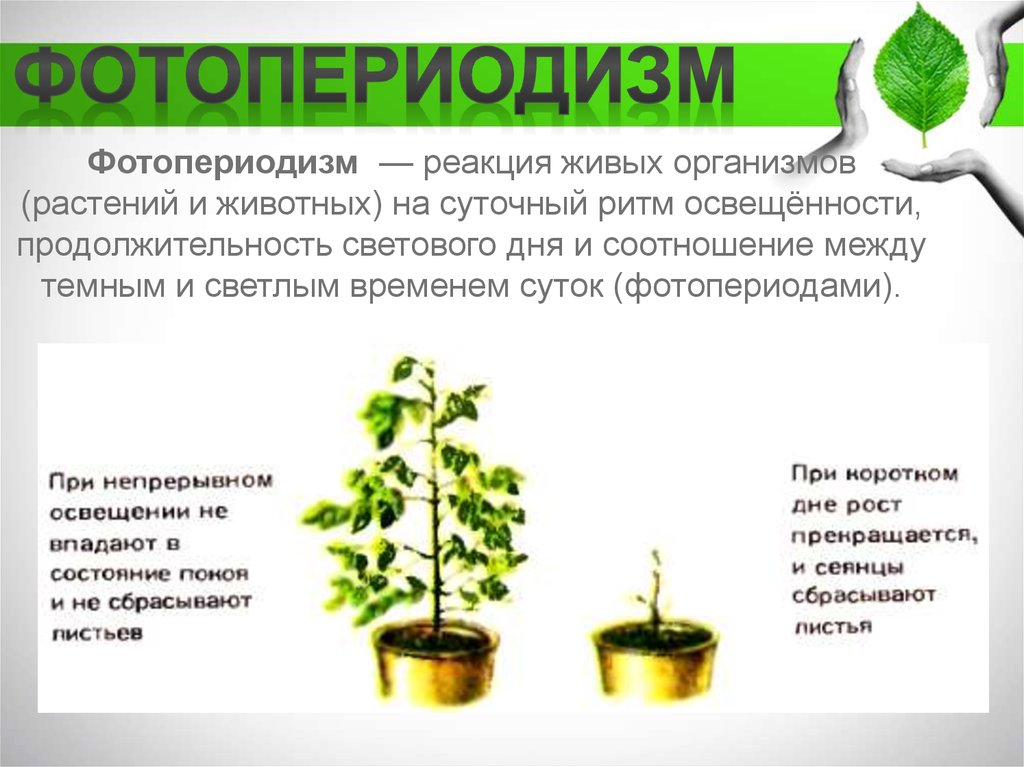 Фотопериодизм — реакция живых организмов(растений и животных) на суточный ритм освещённости,