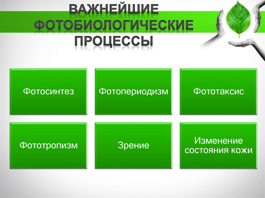 • Фотобиологическими называют процессы,начинающиеся с поглощения света