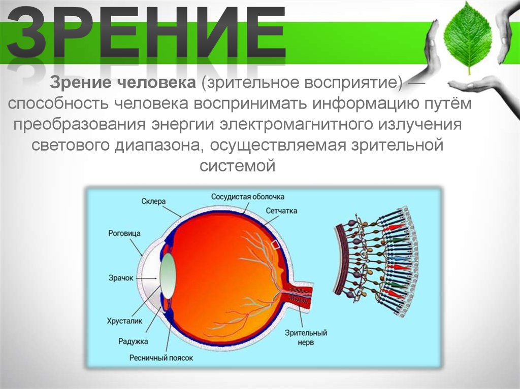 Зрение человека (зрительное восприятие) —способность человека воспринимать информацию путём