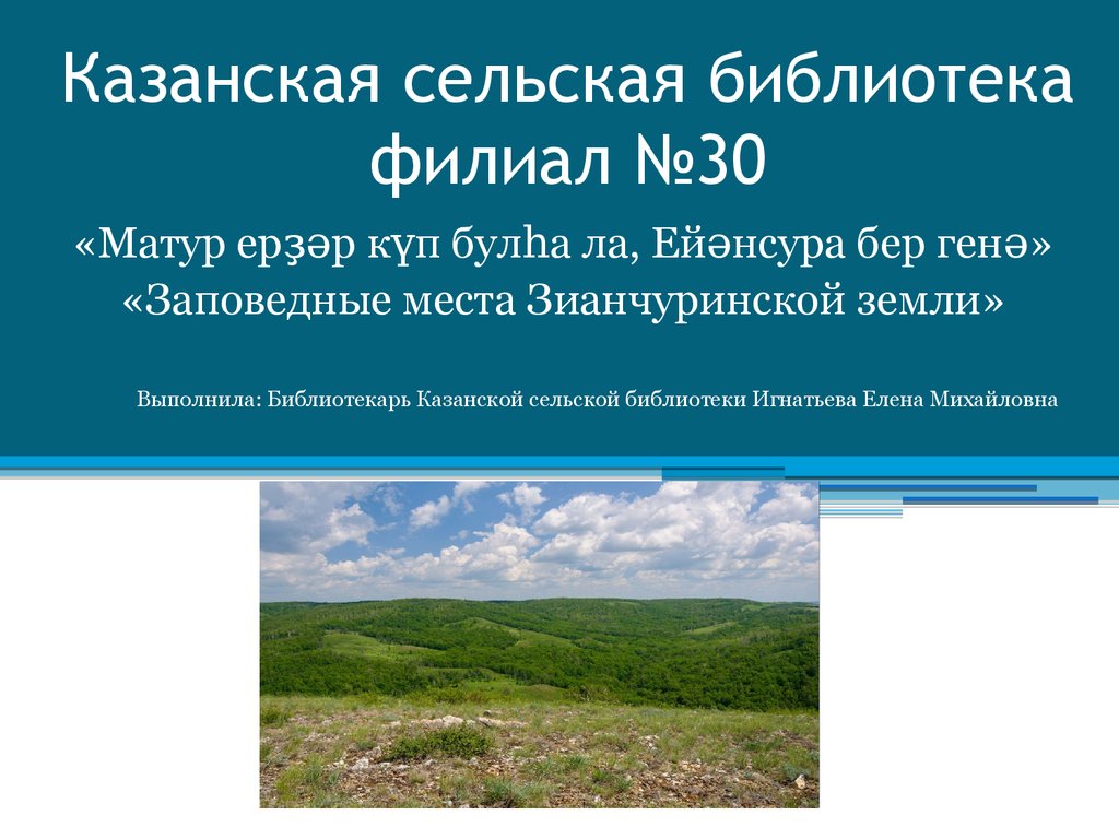 Выполнила: Библиотекарь Казанской сельской библиотеки Игнатьева Елена Михайловна