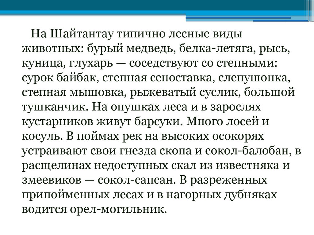 На Шайтантау типично лесные видыживотных: бурый медведь, белка-летяга, рысь,