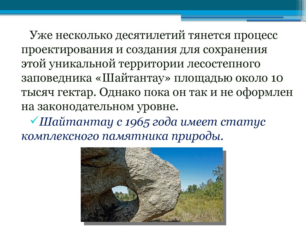 Шайтантау ("Чертов хребет") — один из горнолесостепных массивов, вклинивающихся вюжноуральские степи. Расположен между