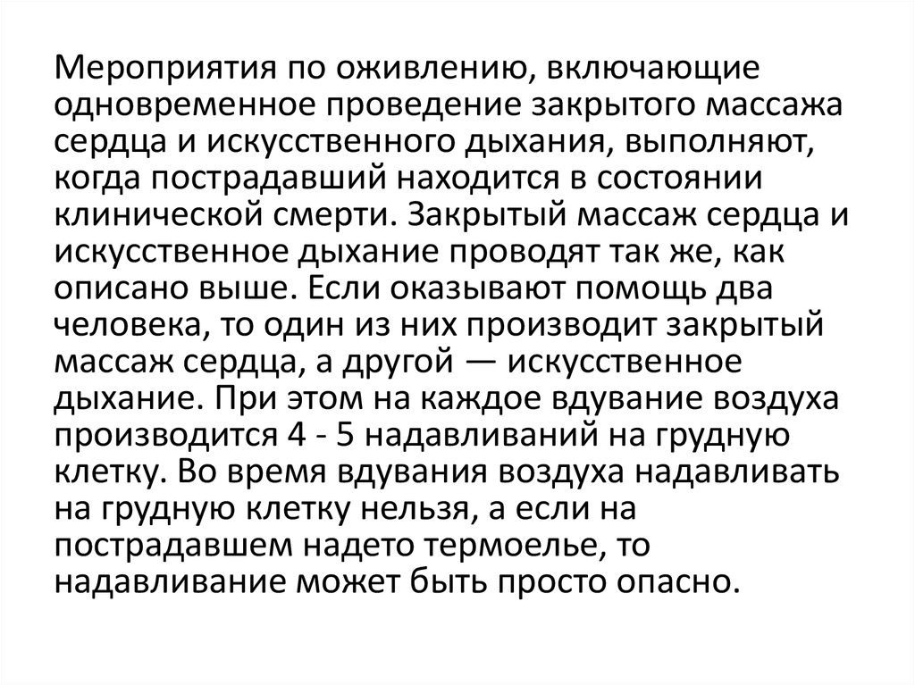 Мероприятия по оживлению, включающиеодновременное проведение закрытого массажа