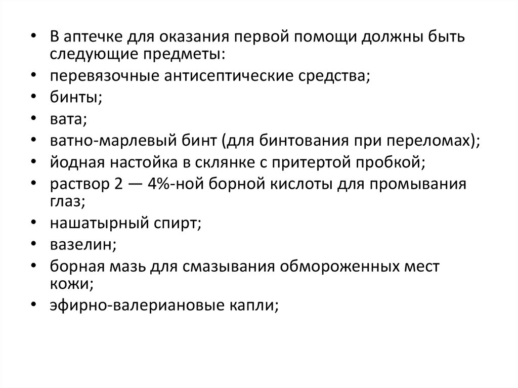 • В аптечке для оказания первой помощи должны бытьследующие предметы: