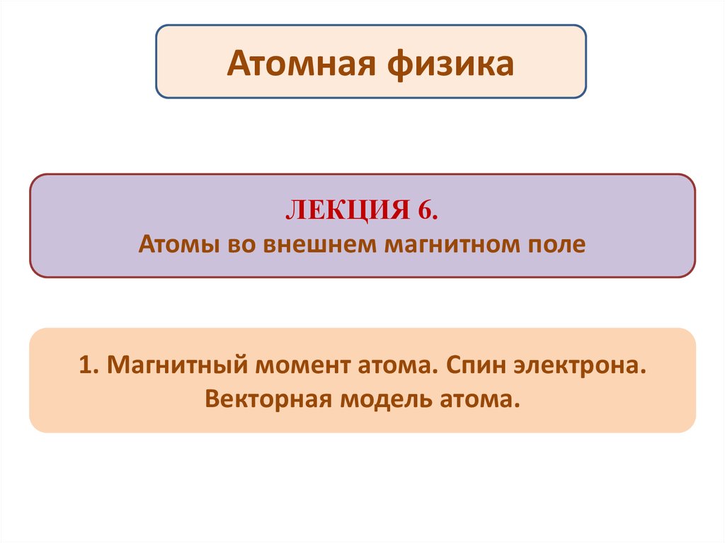 Атомы во внешнем магнитном поле. Магнитный момент атома. Спин электрона. Векторная модель атома