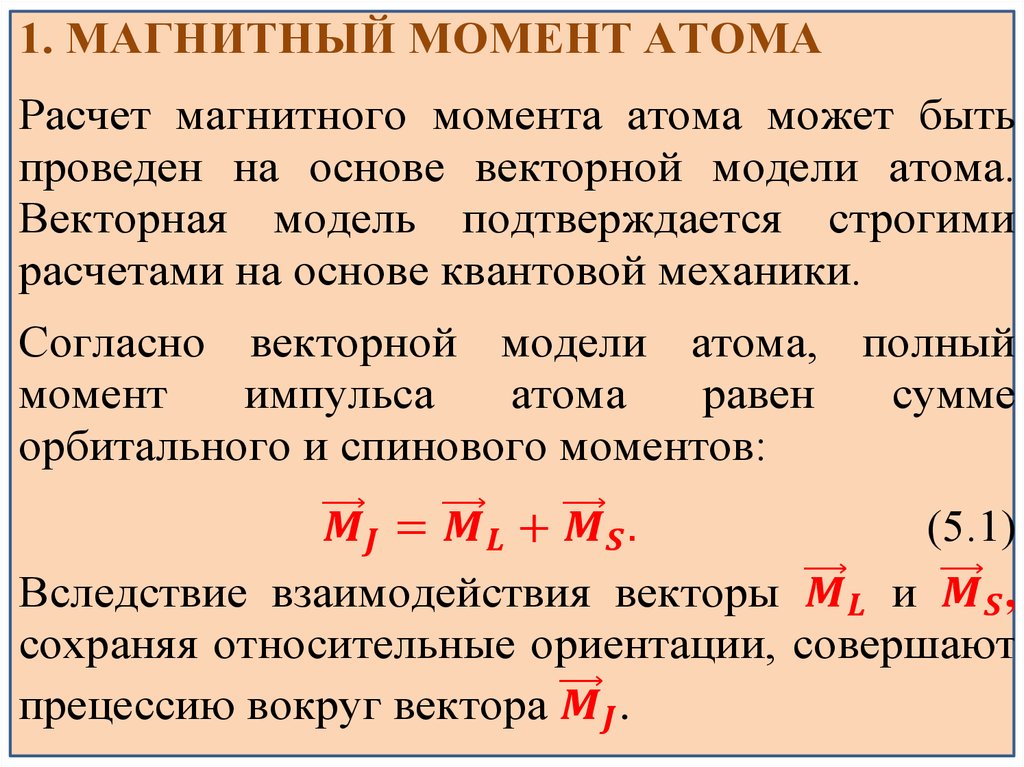 1. МАГНИТНЫЙ МОМЕНТ АТОМАРасчет магнитного момента атома может быть