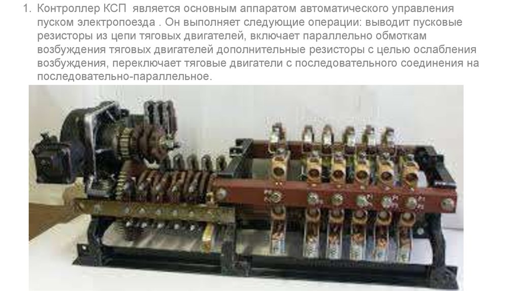1. Контроллер КСП является основным аппаратом автоматического управленияпуском электропоезда . Он выполняет следующие операции: выводит пусковые