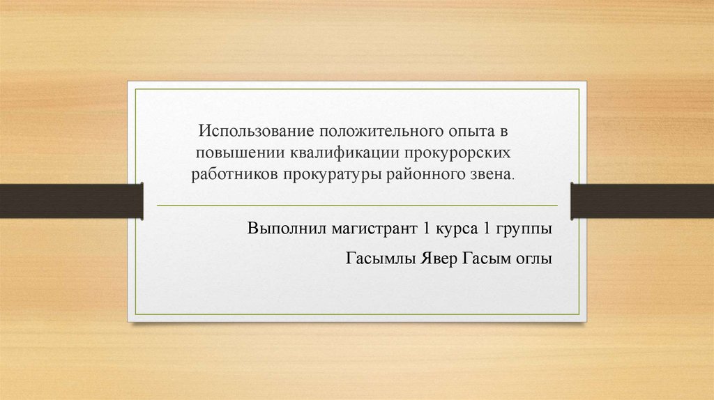 1. Использование положительного опыта в повышении квалификации прокурорских работников прокуратуры районного звена.