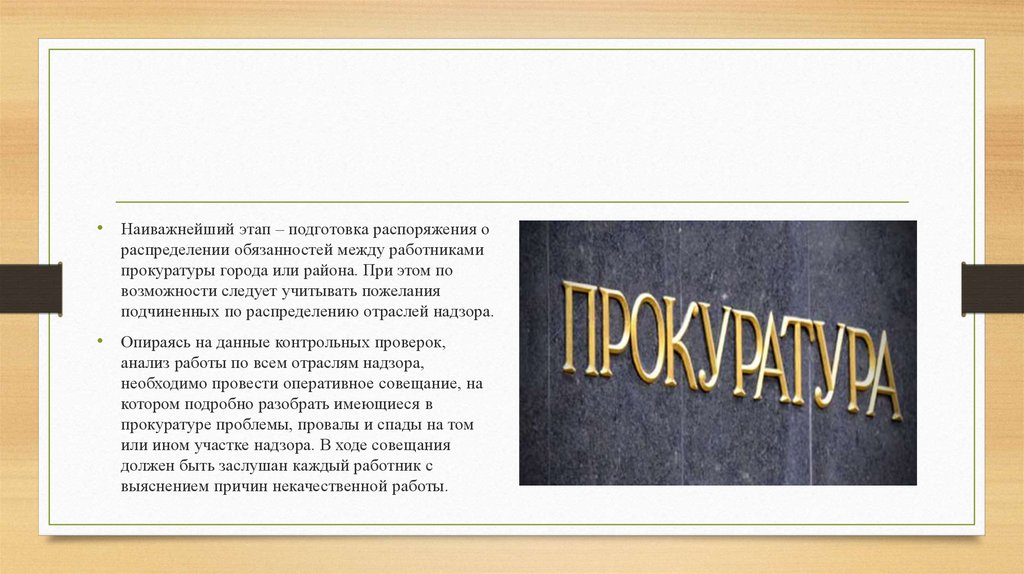 прокуратур и др. Подготовку и доклад того или иного материала поручать соответствующим работникам, исходя