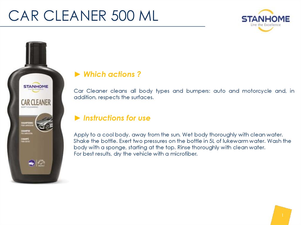 ► Which actions ?Car Cleaner cleans all body types and bumpers: auto and motorcycle and, in