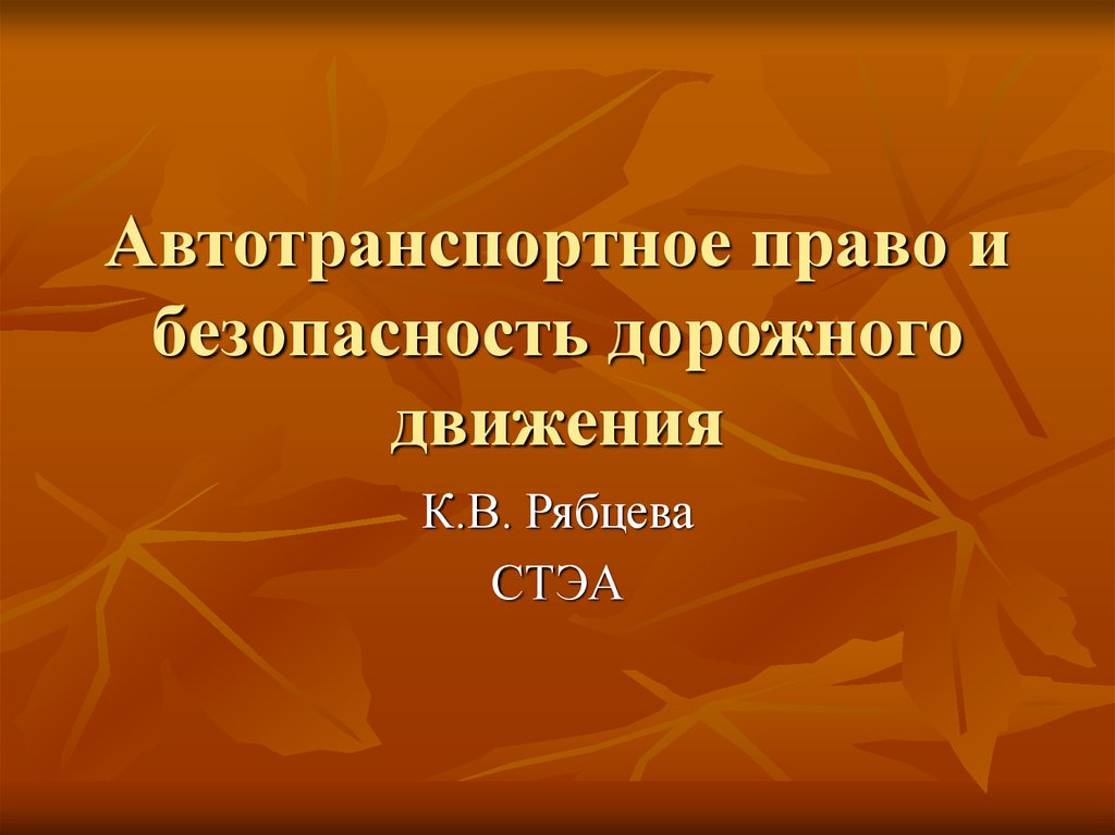 1. Автотранспортное право и безопасность дорожного движения