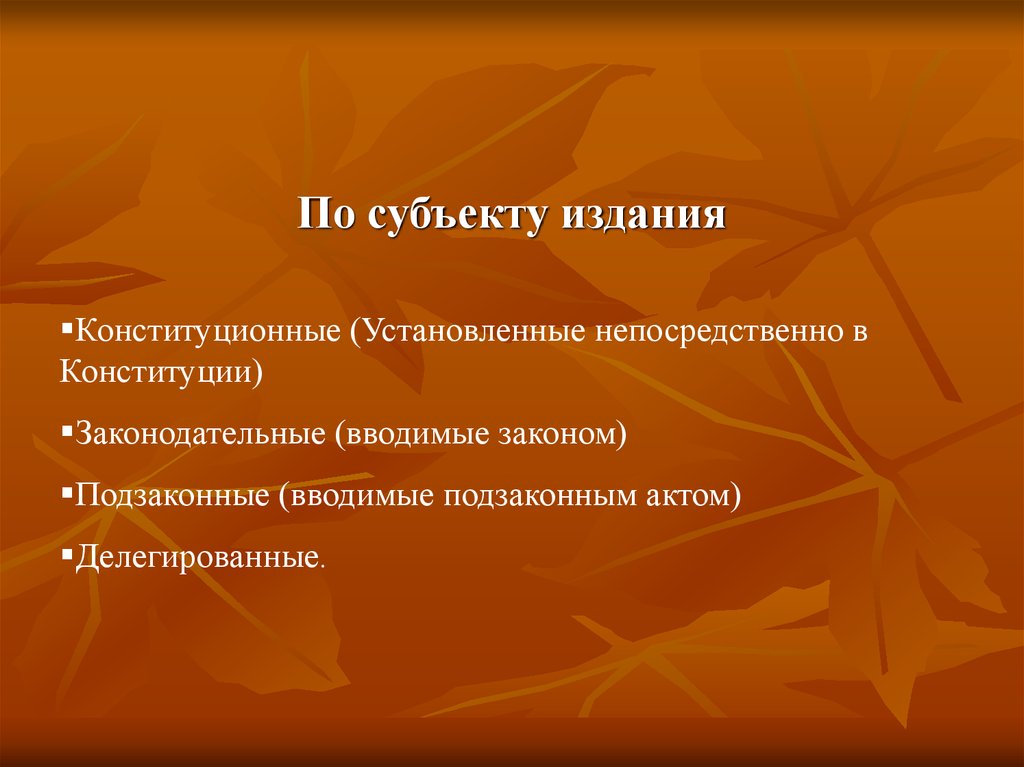 По субъекту изданияКонституционные (Установленные непосредственно в