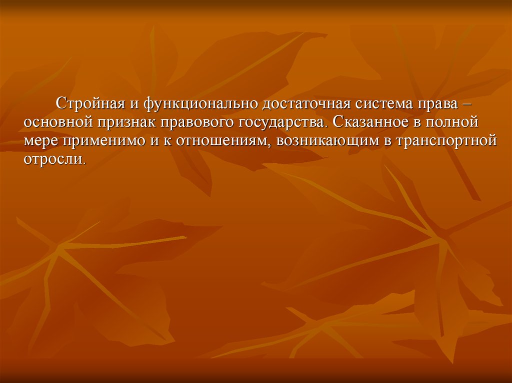 Стройная и функционально достаточная система права –основной признак правового государства. Сказанное в полной