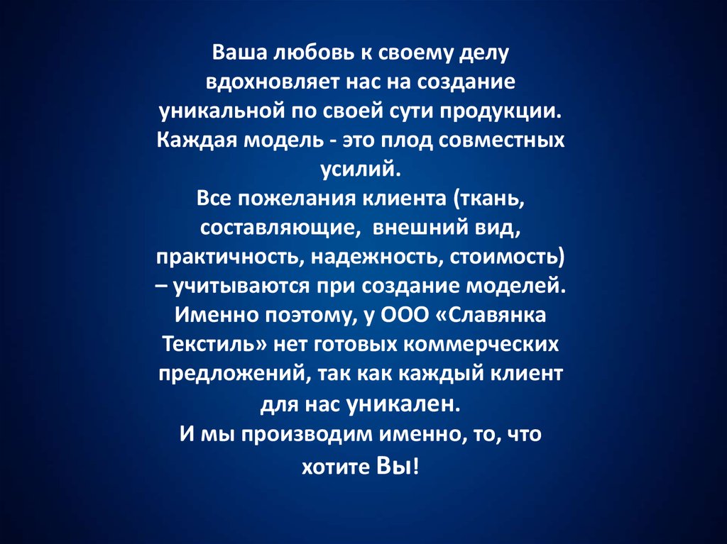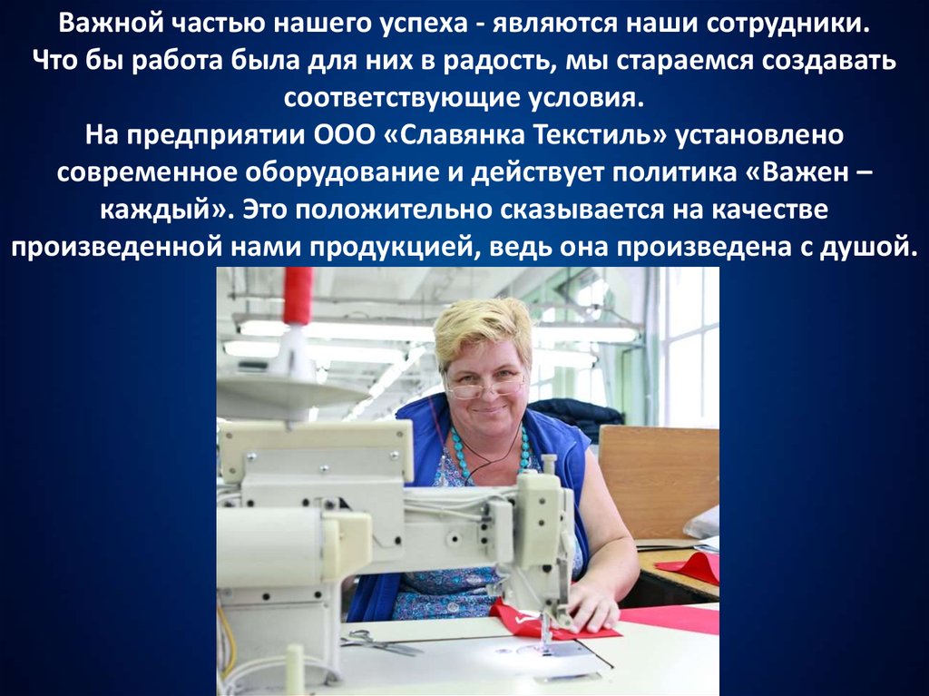 Для нас очень важно, что бы произведенная нами продукция была людям подуше.